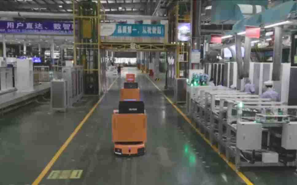 为车载冰箱物流配送打造的智能解决方案,,,包含产中物流通过潜伏举升AMR搬运至线边,,,,产后成品物流智能仓储,,流程包含产中物流智能齐套入库,,线边安灯叫料AMR智能配送至线边,,,成品入库、、、、出库,,,,通过无人堆高车机器人,,,智能仓储管理替代人工作业管理,,,,实现更高存储、、、更高效率、、、更具柔性化的解决方案。。。
